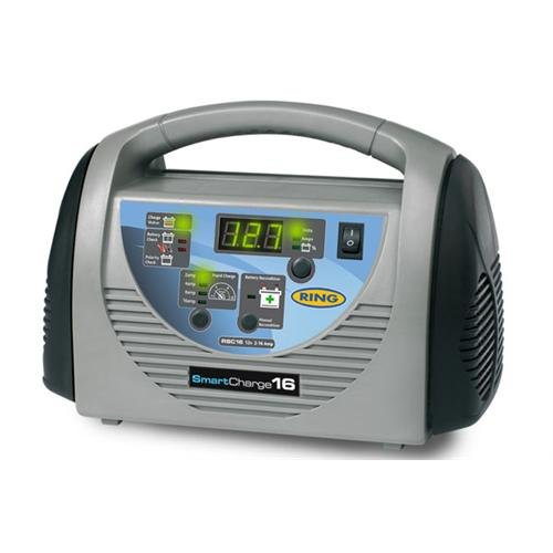 Professional SmartCharger battery charger with battery reconditioning and remote battery check and 2-16 amp charging capacity. Tangle free leads are stored conveniently in storage section within the charger